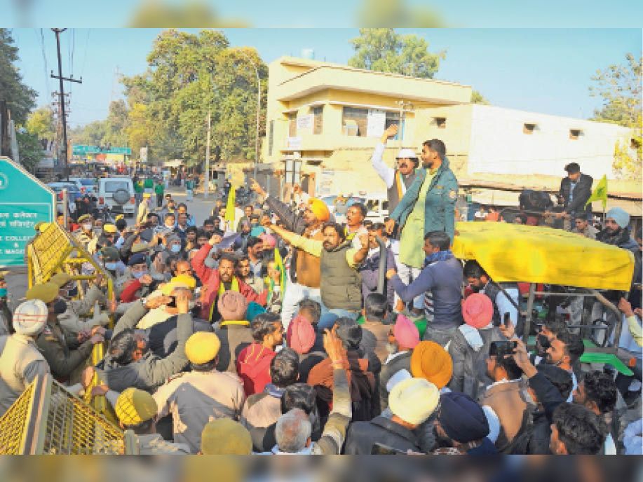 सभा के बाद किसान कलेक्टर काे ज्ञापन देने के लिए ट्रेजरी के सामने वाले गेट पर पहुंचे ताे यहां पुलिस के अधिकारियाें ने प्रतिनिधि मंडल के रूप में चार पांच किसानाें काे ही कलेक्ट्रेट में प्रवेश देने की बात कही। इस पर किसान भी अड़ गए, राेके हुए ट्रैक्टर वापस मंगलवार कलेक्ट्रेट गेट के बेरिकेड्स से अड़ा दिए व रेस बढ़ा दी। प्रशासन काे चेतावनी दी कि 10 मिनट में या ताे कलेक्टर बाहर आकर ज्ञापन या फिर किसान बेरिकेड्स ताेड़कर कलेक्ट्रेट में प्रवेश करेंगे।
